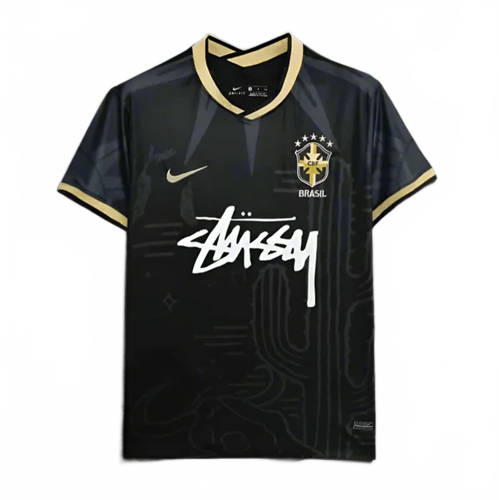 Brazil x Stüssy Nike Fashion Collab Concept Jersey - Black & Gold - Size Large