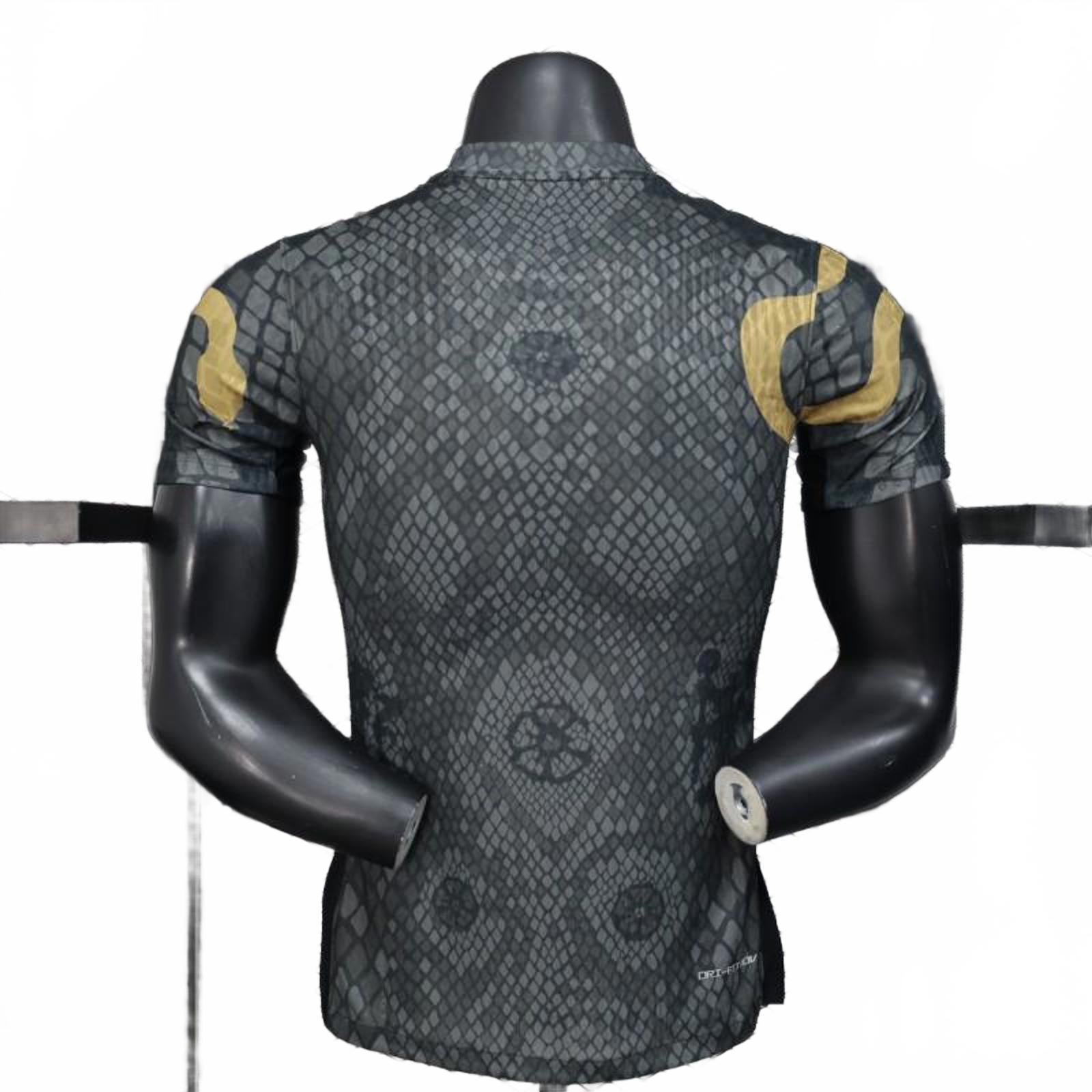This exclusive black jersey features premium detailing and a pro-level fit – crafted with ultra-light, breathable fabric for speed, comfort, and precision. Inspired by innovation and built for performance, it’s perfect for match intensity or standout streetwear.