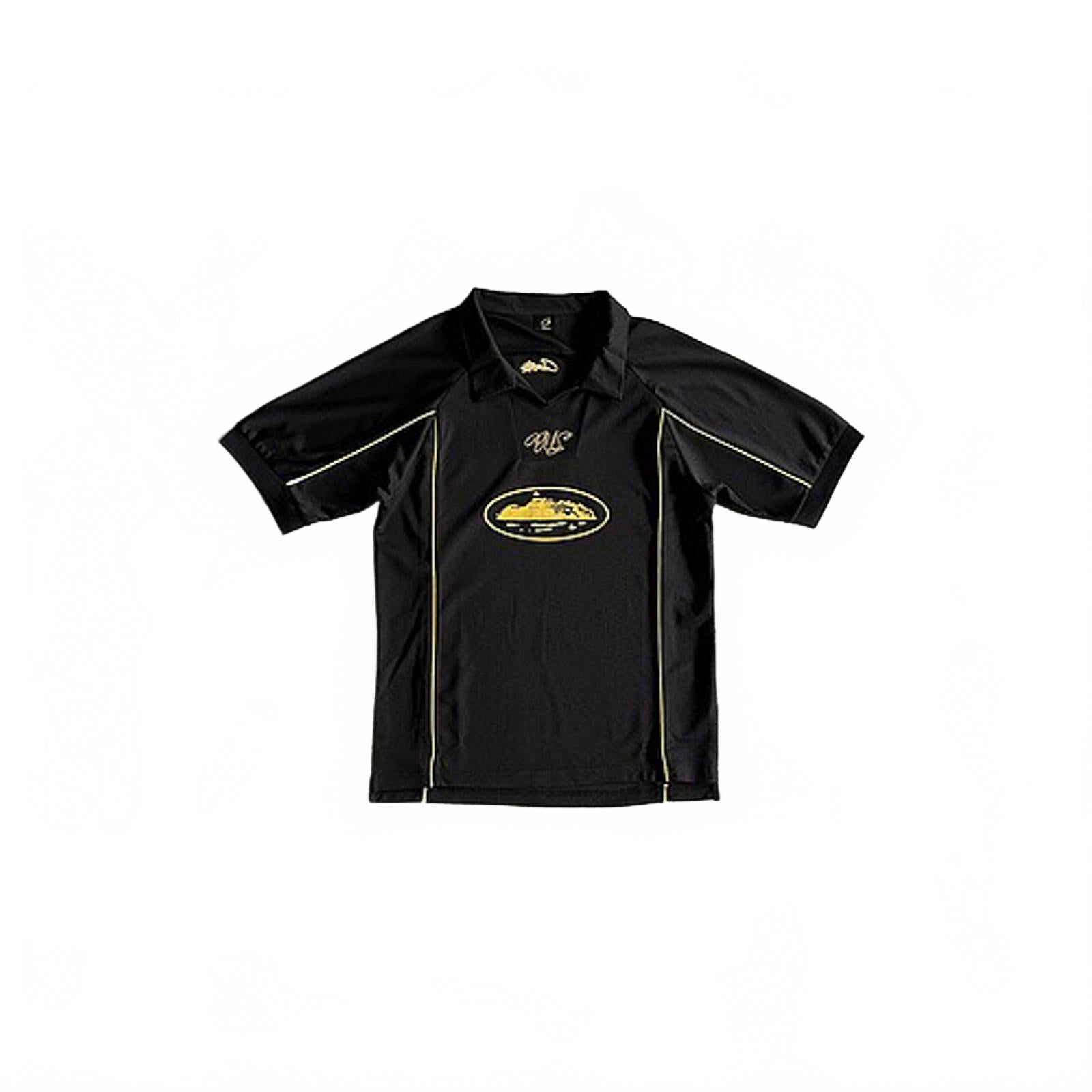 The Corteiz Talismo Football Jersey is a brand new men's football shirt in a Black & Yellow. Made from polyester jersey fabric, this short sleeve shirt features a V-neckline and embroidered accents. It is designed for summer sports enthusiasts and is machine washable for easy care. With a sports theme and breathable features, this jersey combines style and functionality for the modern football player.