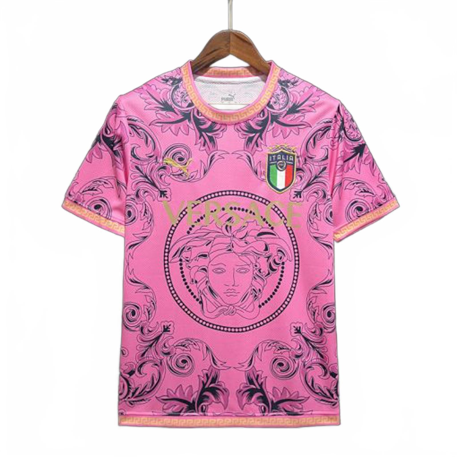 Make a bold statement with the Italy x Versace Puma 2023 Concept Jersey – Pink.