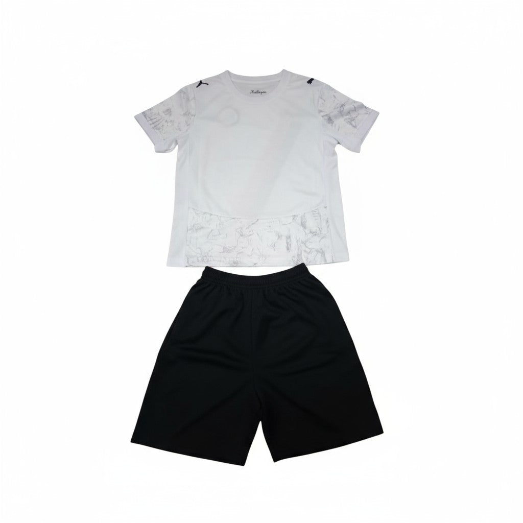 This sleek white kit includes the shirt, shorts, and socks – designed for movement, comfort, and standout style. Built with lightweight, breathable fabric and a modern fit, it’s perfect for match days, training, or everyday wear.