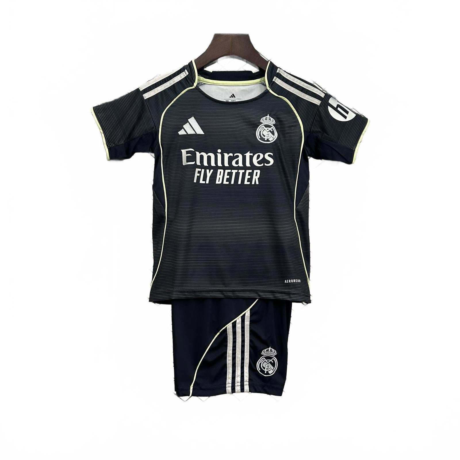 Real Madrid 25/26 Adidas Kids Away Kit - Black - Inc Socks