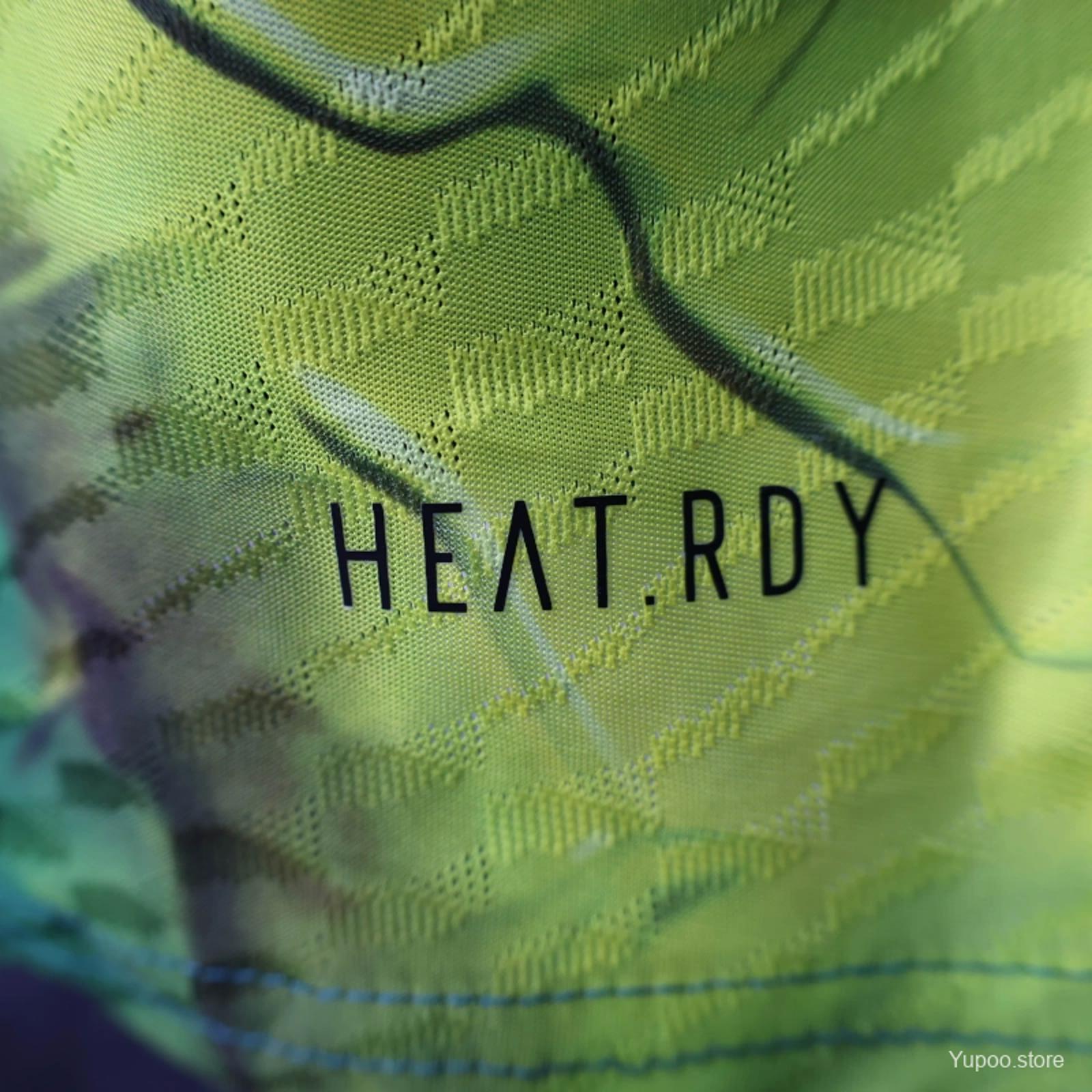 Featuring a vibrant yellow base with swirling green and blue accents, this jersey is engineered with pro-level performance fabric and a slim athletic fit – just like the players wear. AEROREADY technology keeps you cool and dry, while the heat-applied crest and sponsor details complete the elite look.